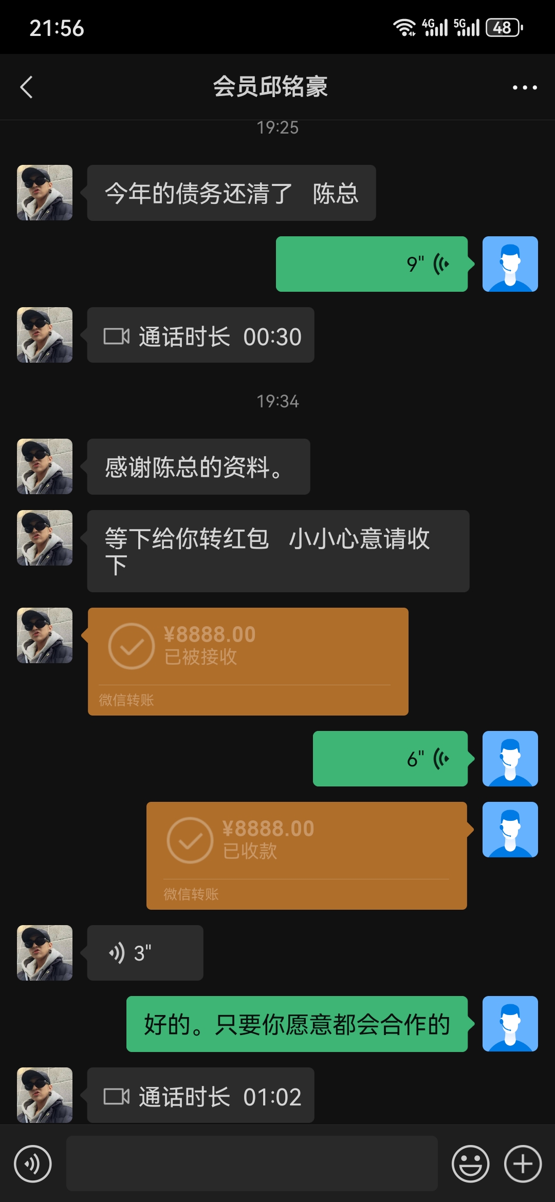 陈总好,今晚第一期合作不是太相信资料,下得比较小,给您包8888小红包吧,明天晚上继续跟您发财
